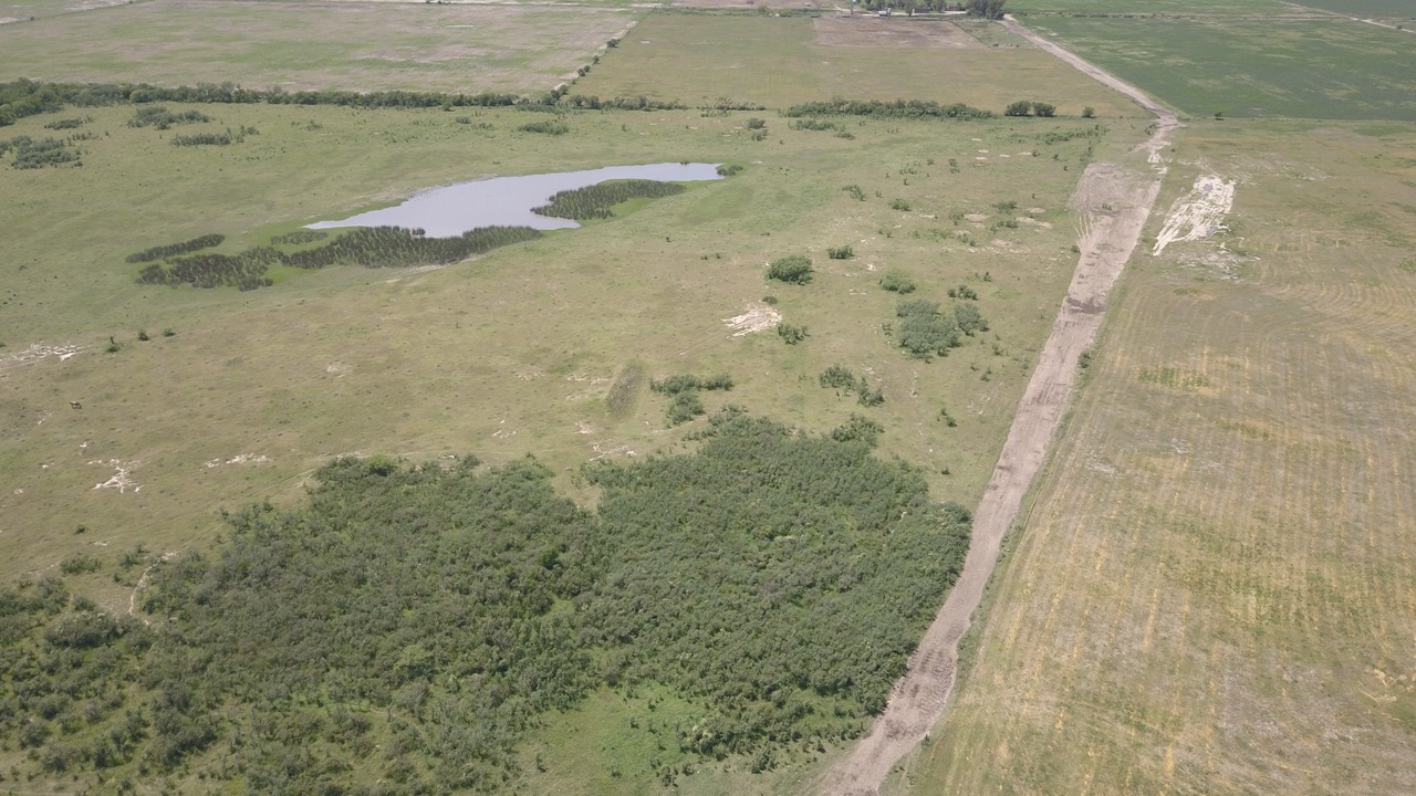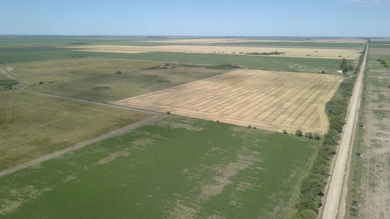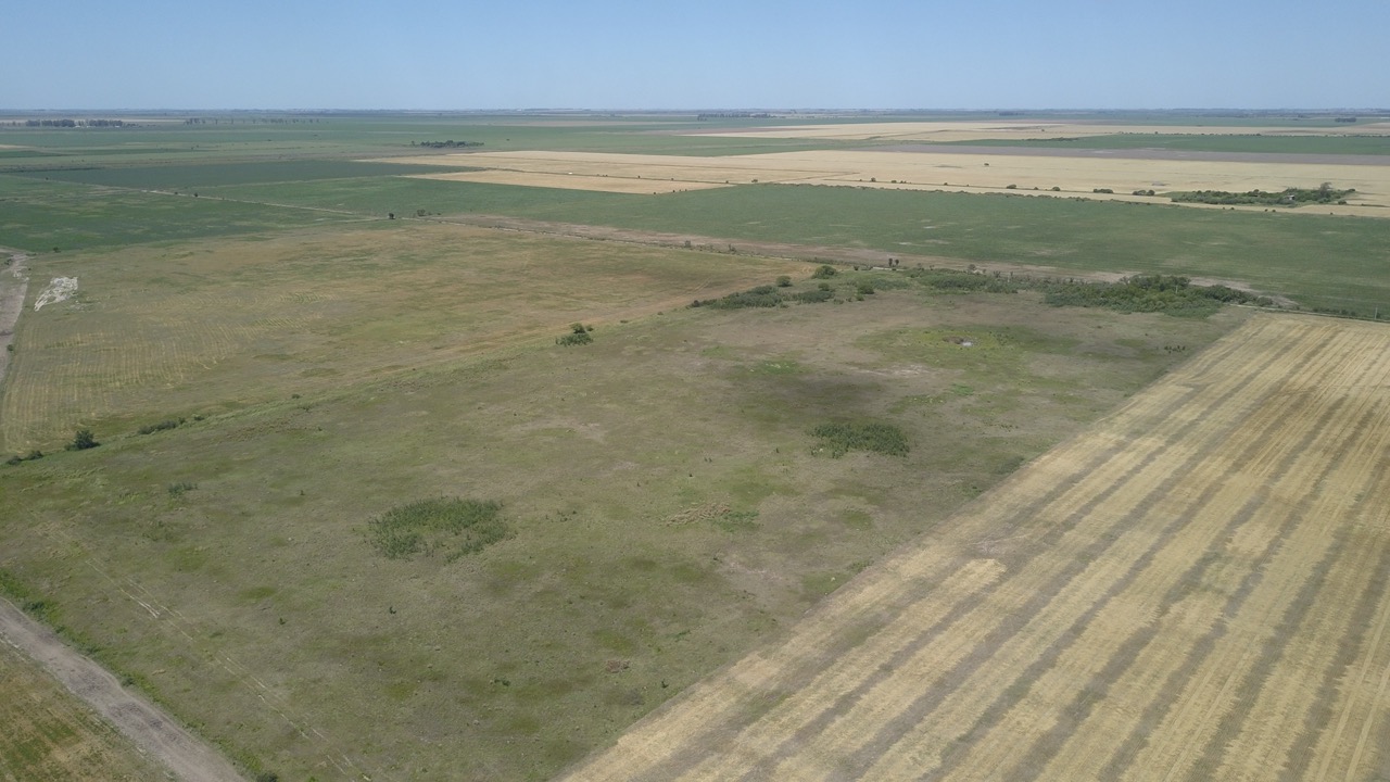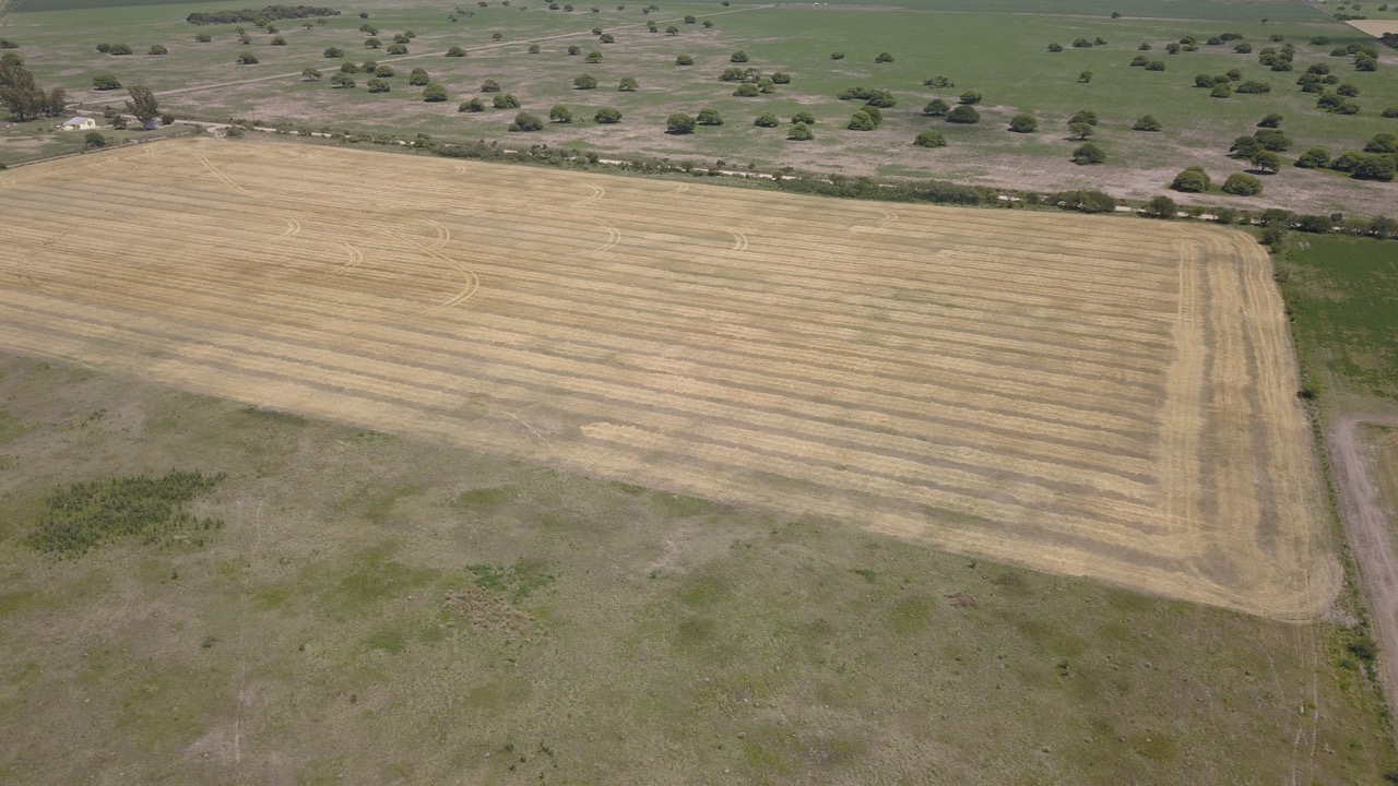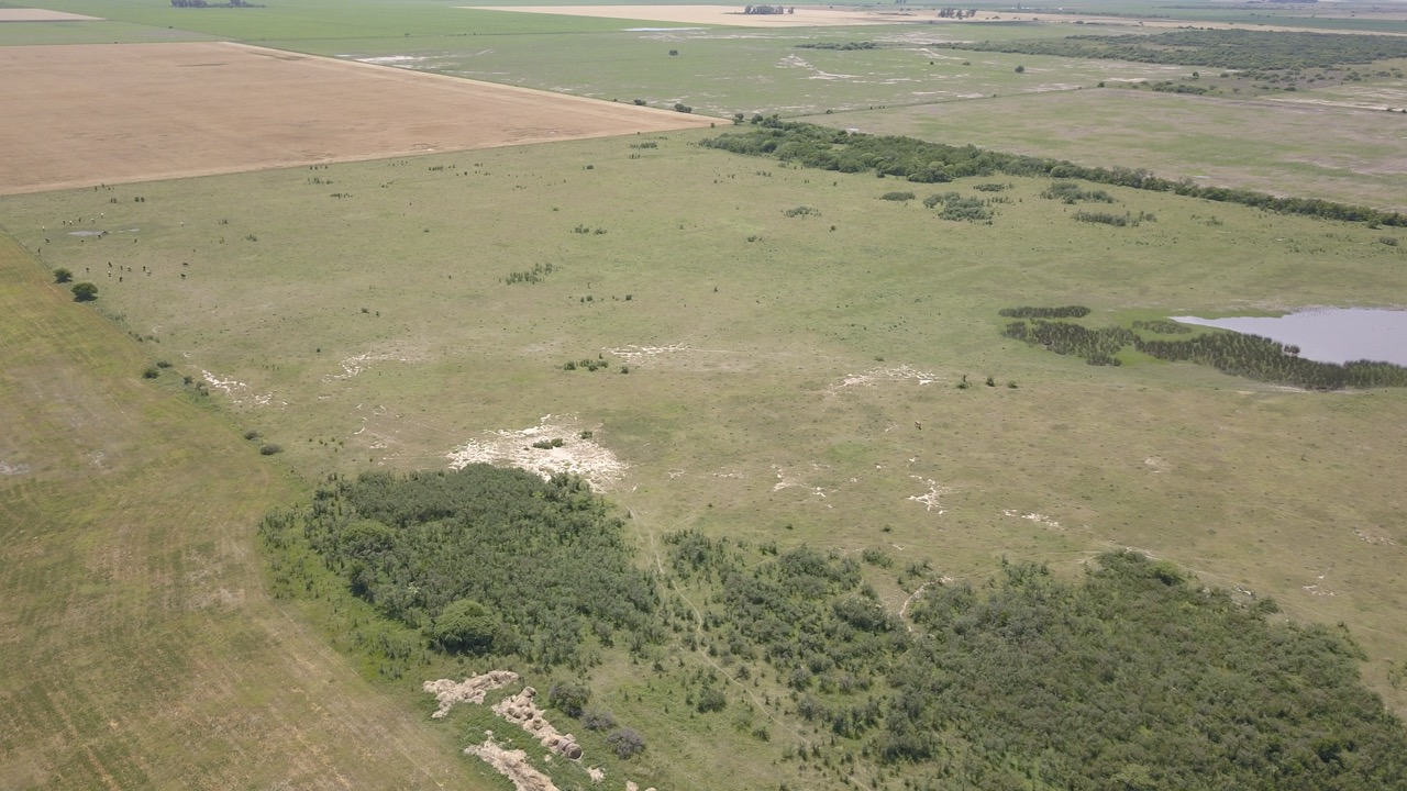 el campo se trabaja un 50% (actualmente con rastrojo de trigo, alfalfa y avena), y el resto se hace ganadería en lotes que no están limpios, ya que cuentan con renovales y poseen sectores bajos, donde se hacen espejos de agua en época de lluvias.)