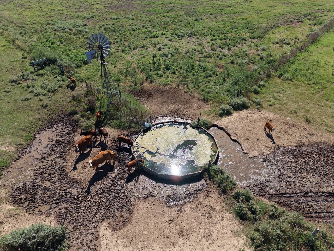 Tiene alambrado perimetral, y divisiones internas con 6 potreros.