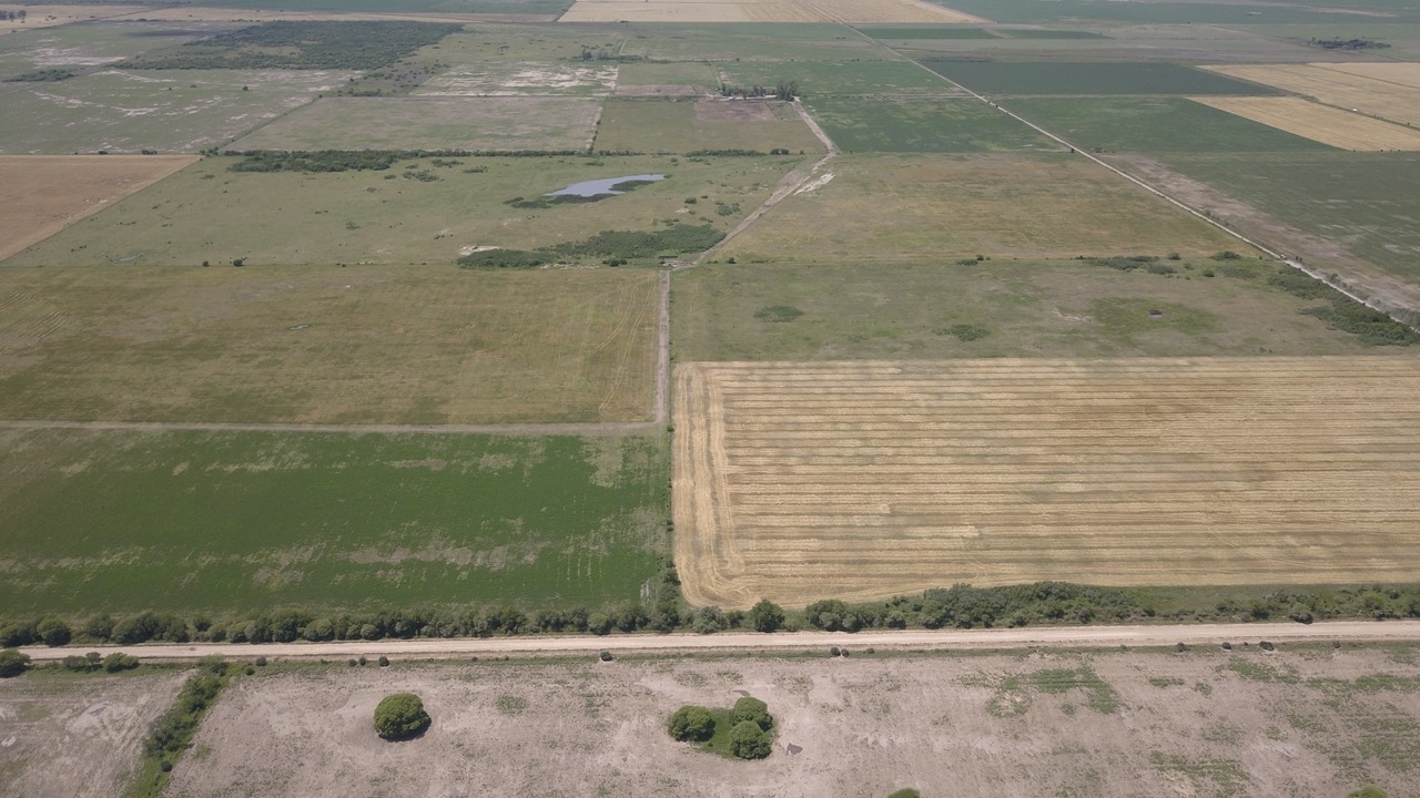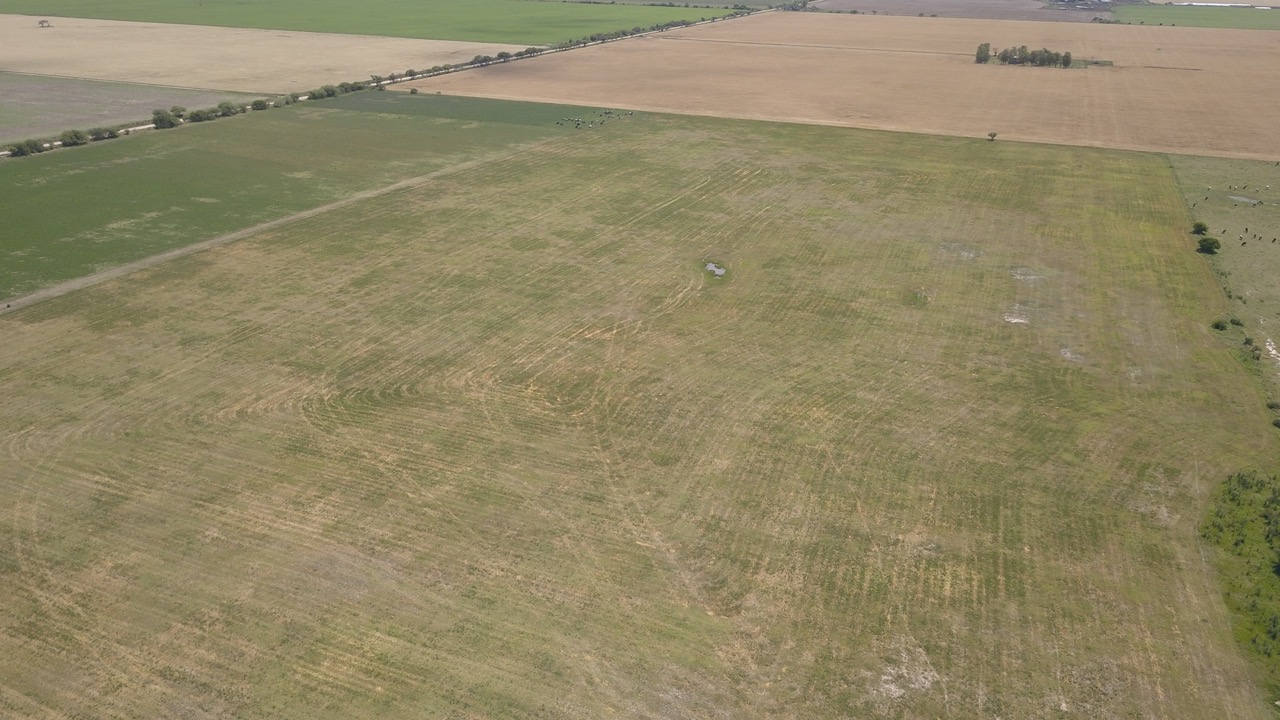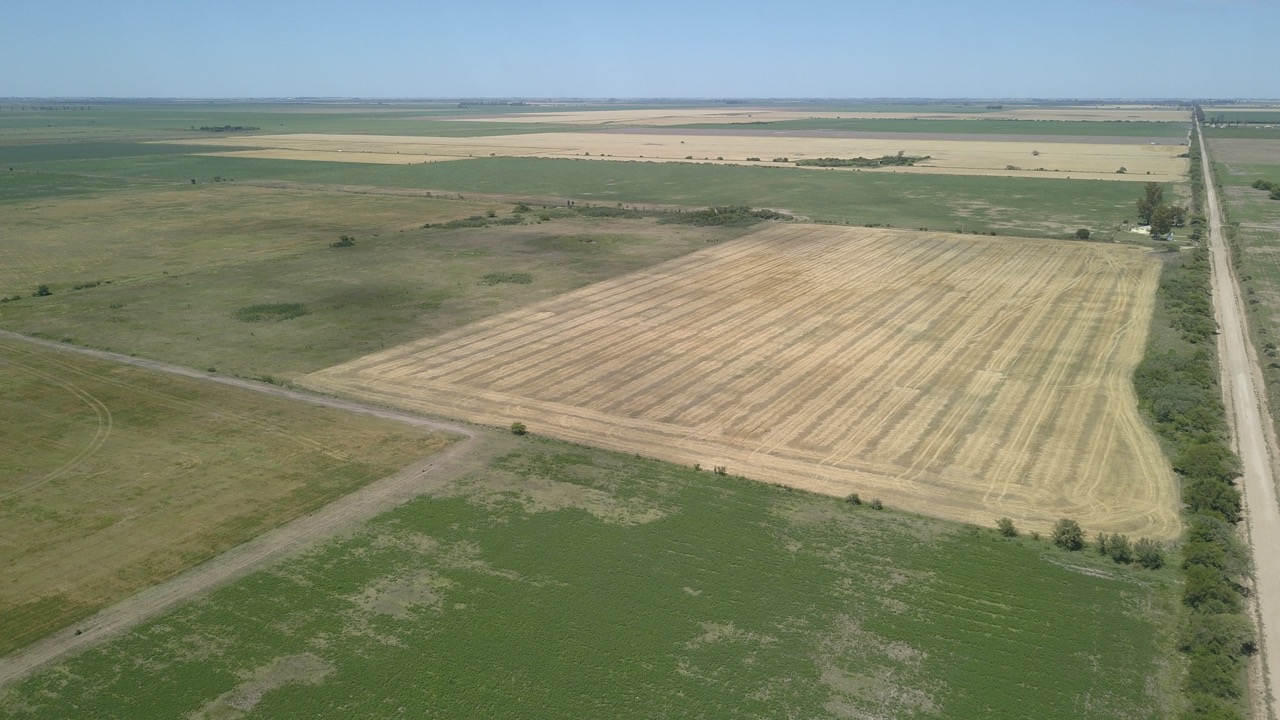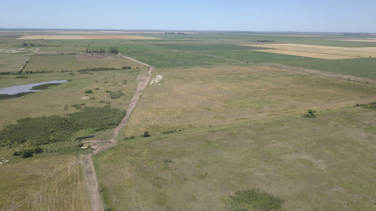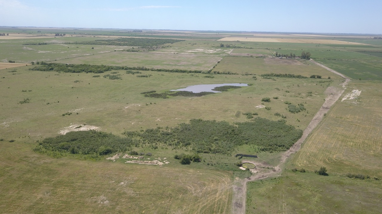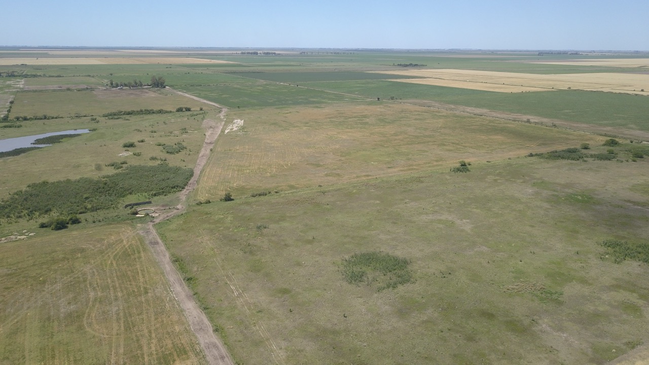 el campo se trabaja un 50% (actualmente con rastrojo de trigo, alfalfa y avena), y el resto se hace ganadería en lotes que no están limpios, ya que cuentan con renovales y poseen sectores bajos, donde se hacen espejos de agua en época de lluvias.)
