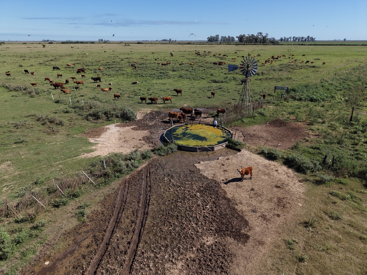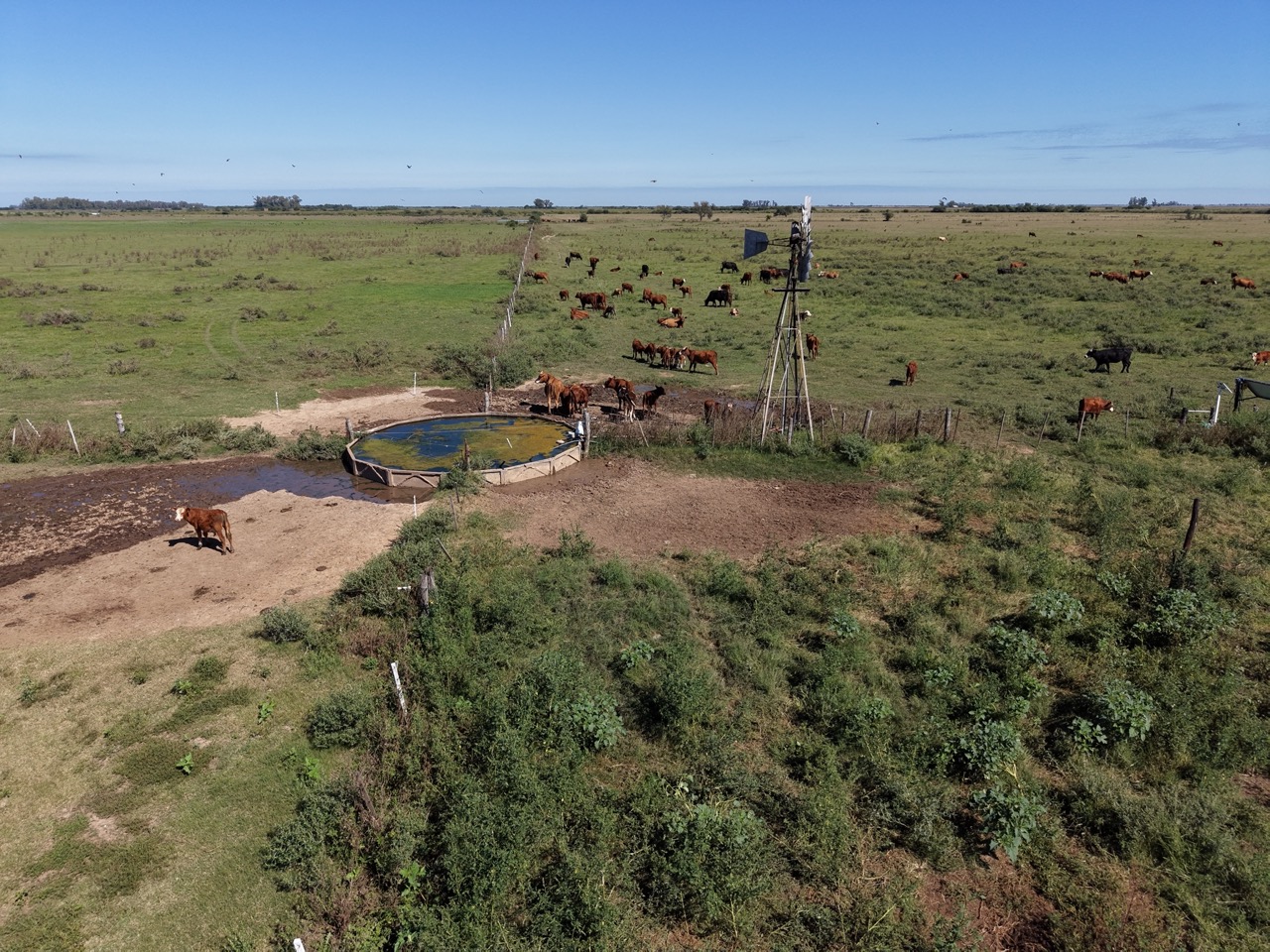 Tiene alambrado perimetral, y divisiones internas con 6 potreros.
