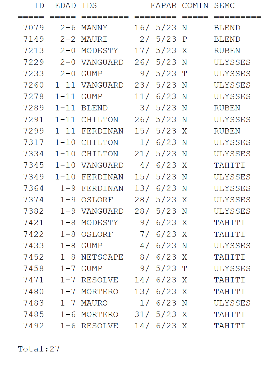 HIJAS DE INSEMINACION (desde 1985). Con producciones de Madres, de 10.000 Kl a 15.000 KI, 305 dias