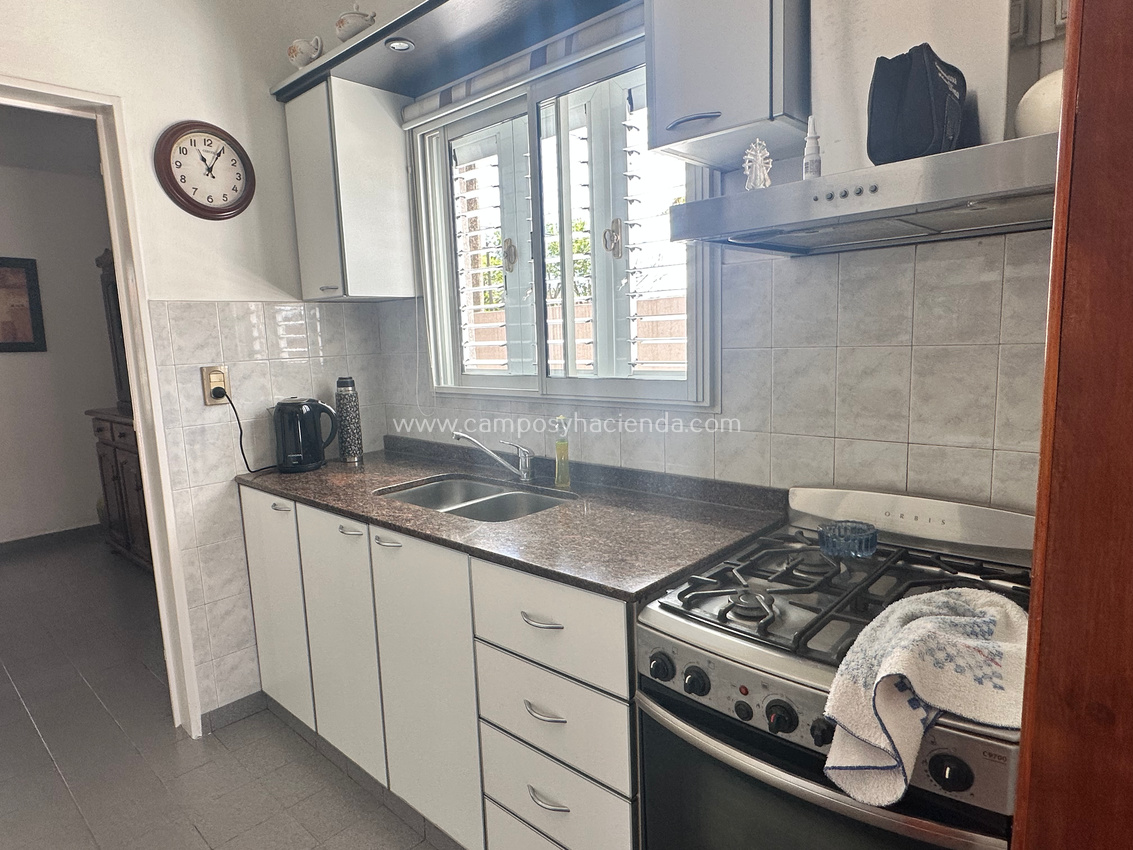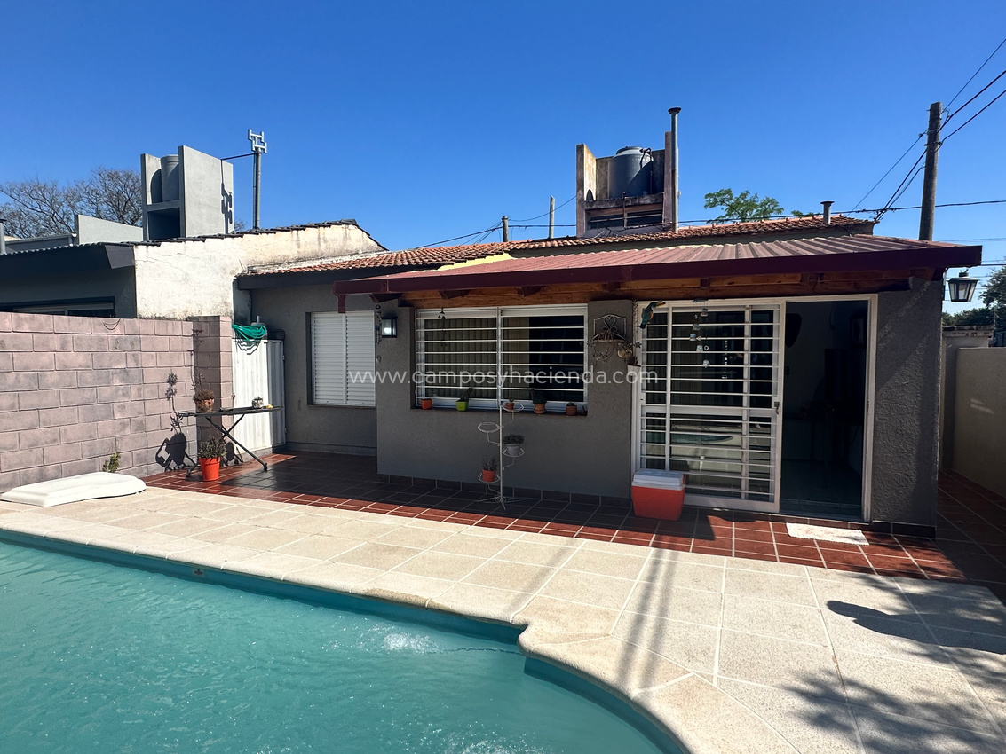 Casa de 2 dormitorios, un baño, cocina- lavadero y comedor (de 64 m2), mas ampliación de living/comedor, quincho/garaje (de 70 m2.) y Pileta de natación.